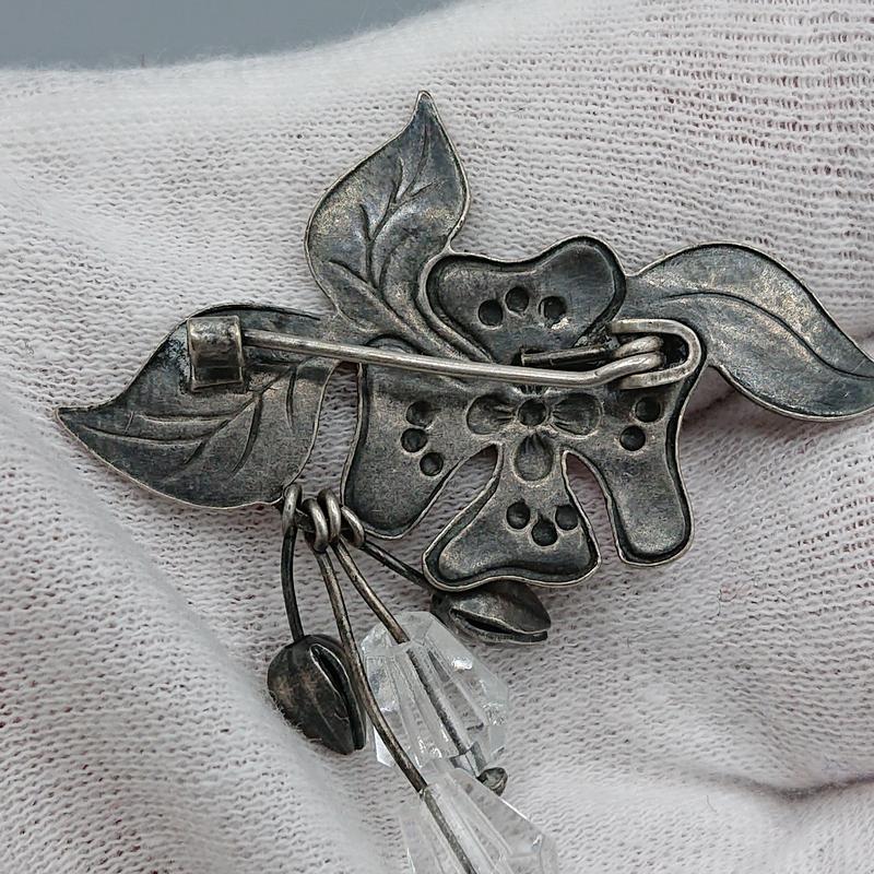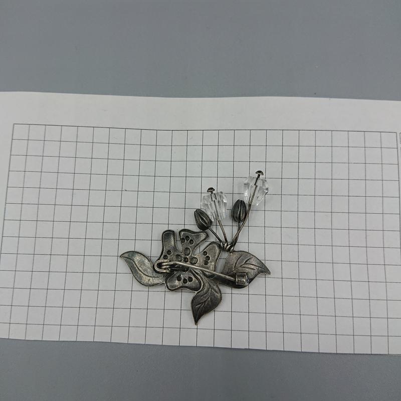 Винтажная брошь яблочный цветок мельхиор горный хрусталь