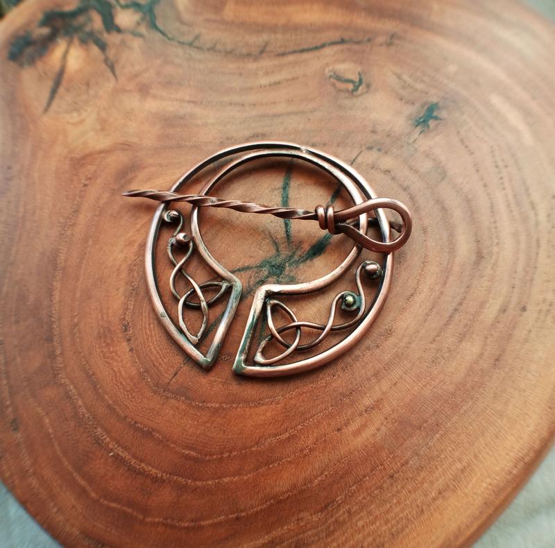 Брошка фибула в кельтском стилеРучная работа из медиОчень хороший вариант для шарфа, палантина или даже плаща