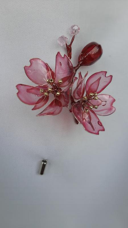 Женское украшение ,новая работа ювелирная украшение брошь глазная ветка сакуры, созданная из ювелирной проволоки 0.3 мм, цвет посеребренный, ювелирной смолы витраль, наместины чешский хрусталь, бирес, фурнитура под серебро 7,5 см. авторская ручная работа, выполненная в едином экземпляри. , вага 4 гр.