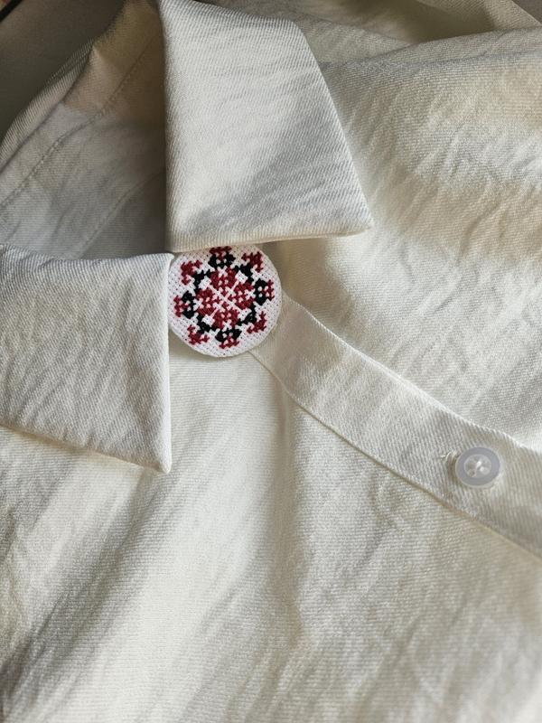✨ Брошь с вышивкой - символ счастья в каждой стежке Эта нежная брошь украшена традиционным украинским орнаментом, вышитым вручную. ⠀ 🌿 Орнамент не случайный – он символизирует счастье, гармонию и благополучие. 🔸 Вышивка заняла 2 часа ручной работы – с любовью к каждой детали. 🔸 Натуральные материалы, классическое сочетание бордового, черного и белого. ⠀ Идеально подходит к рубашке, пиджаку или платью, добавляя образу украинского шарма и глубины.
