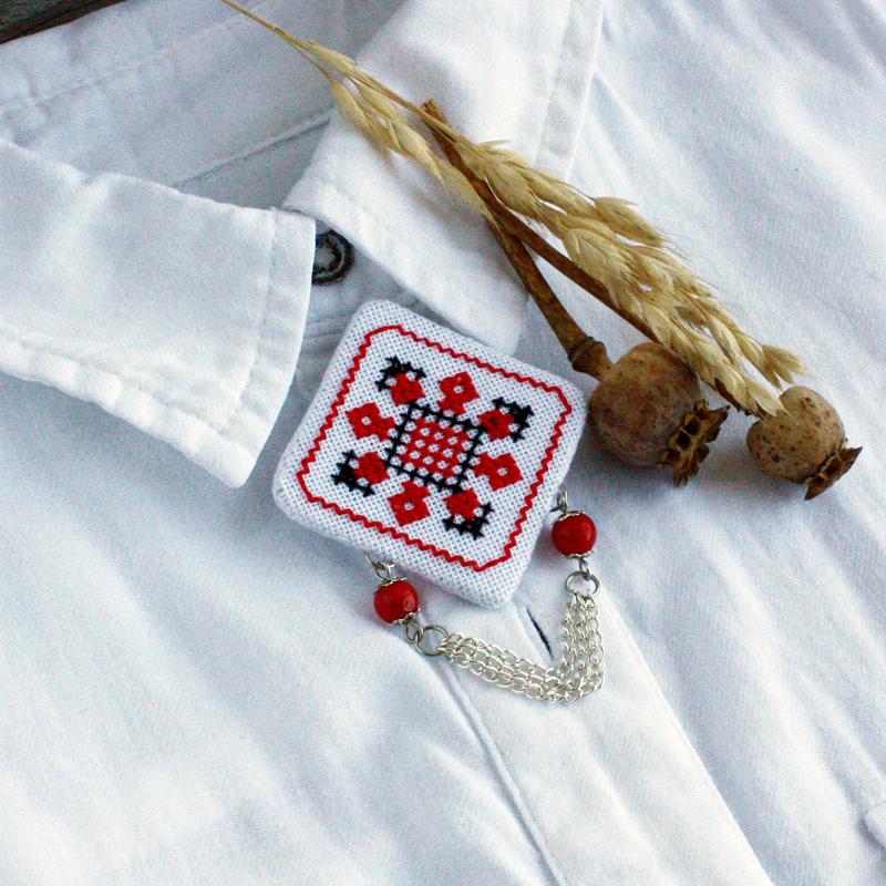 Красная черная брошь с закодированным именем в вышивке украинские этнические украшения
