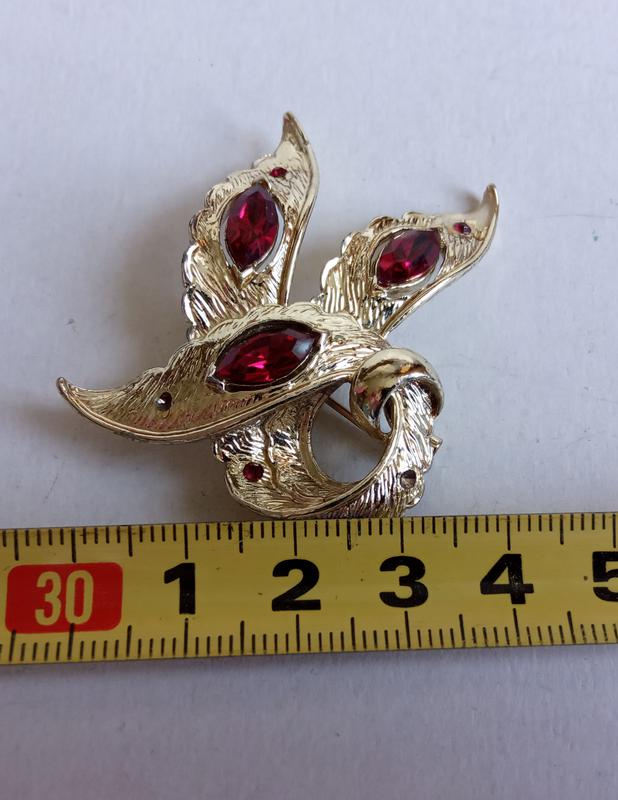 Брошь брошка с рубиновыми кристаллами позолота MYA Италия премиум бренд