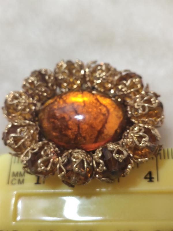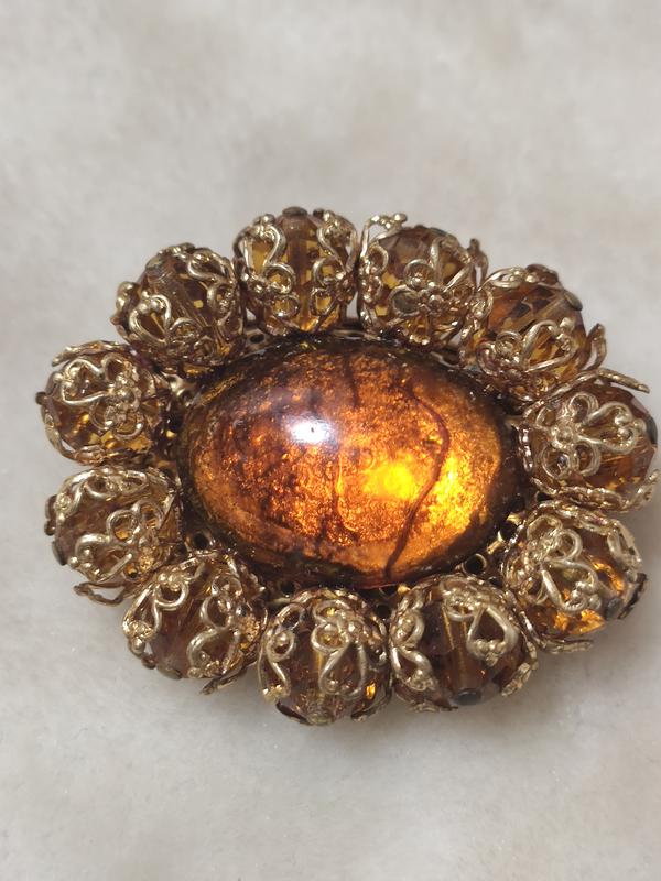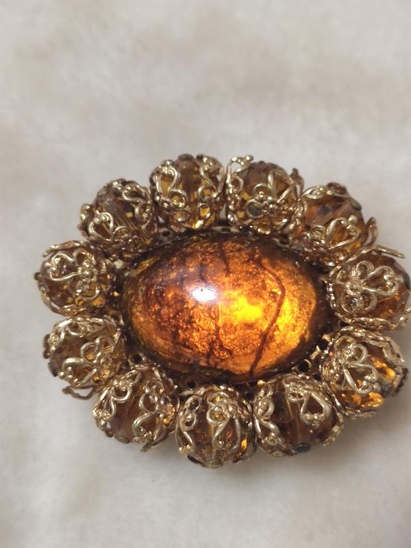 ⚜️ Очаровательная,винтажная,наборная брошь.▪️▪️▪️▪️▪️▪️▪️▪️▪️▪️▪️▪️⚜️Изготовлена в 60-70х годах,прошлого века,в Чехословакии.▪️▪️▪️▪️▪️▪️▪️▪️▪️⚜️Брошка, с ажурной сеткой из скани внутри которой,медовые кристаллы.▪️▪️▪️▪️▪️▪️▪️▪️▪️▪️▪️⚜️В центре, кабошон медового цвета, под янтарь.▪️▪️▪️▪️▪️▪️▪️▪️▪️▪️▪️▪️⚜️ Прошу учитывать,все винтажные украшения, могут иметь незначительные следы времени.▪️▪️▪️▪️▪️▪️▪️▪️▪️▪️▪️▪️⚜️ Отлично дополнит и украсит Ваш образ.