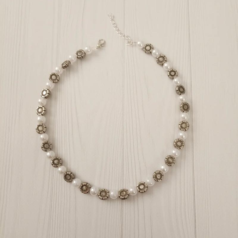 Чокер из бисера ромашки цветочки квіти белый білий колье тренд 2021 ожерелье