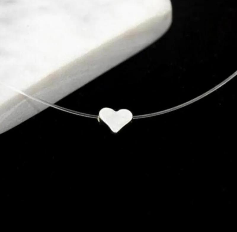 Чокер кулон сердечко на прозрачной силиконовой нитке застежка цепочка