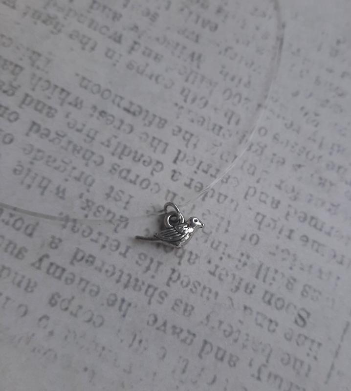 Чокер подвеска птичка кулон hand made ожерелье силикон нить невидим леска бижутерия миним