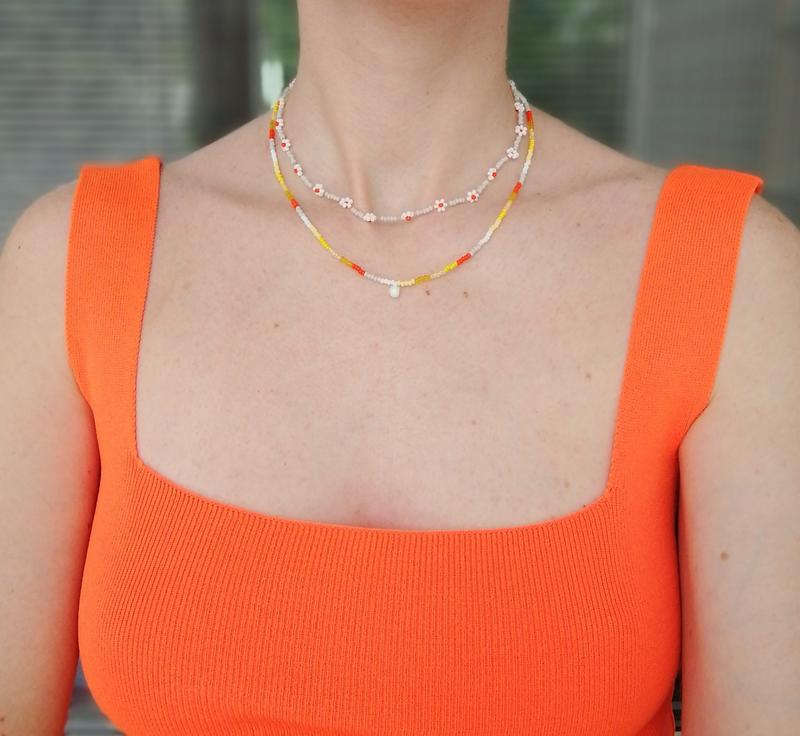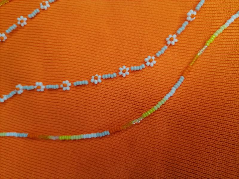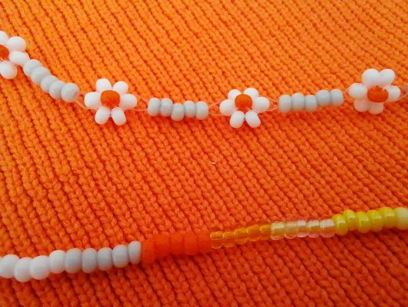 Чокер на шею из цветного чешского бисера плетение "ромашки"Замочек карабин