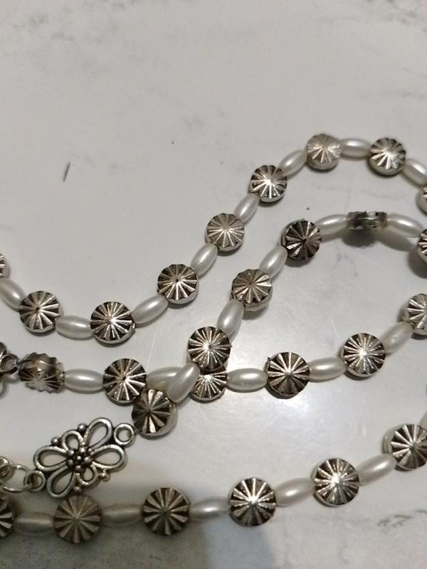 Браслет жіночий зі скляними намистинами та металевою підвіскою
