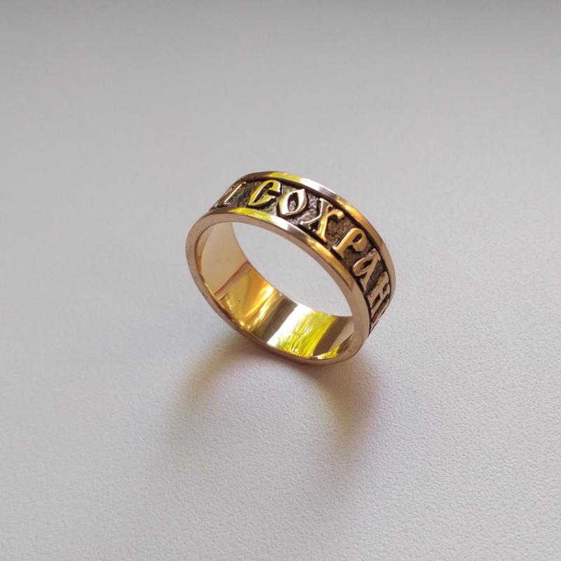 Размер кольца может быть любой! Размерный шаг 0.5 размера, (по окружности пальца это- 1.5мм) Необходимый размер, указывайте в коментариях к заказу. Если вы не знаете своего размера: - Можно зайти в любой ювелирный магазин или мастерскую, и попросить измерить палец пальцемером. - Можно измерить в домашних условиях ******************************************* Если кольцо шире чем 5мм по всей окружности добавляйте от 0.25 размера. Кольцо «Спаси и сохрани» считается сильным оберегом, религиозные люди относятся к нему с большим уважением. Считается, что кольцо-оберег способно защитить хозяина от зла и дурного влияния, направить его на путь истинный -- оно напоминает о важности праведной жизни и ежедневных молитв. Украшение изготовленно на собственном производстве, возможен повтор из серебра или золота. Изделие выполнено из Итальянской ювелирной бронзы, оно не потемнеет, не облезет т.к. полностью состоит из одного сплава. Украшение можно легко подполировать, обычной влажной салфеткой, и оно будет выглядеть как новое, даже через многие годы!