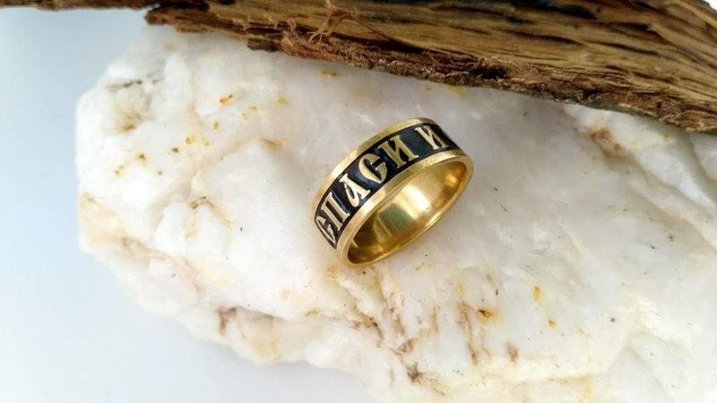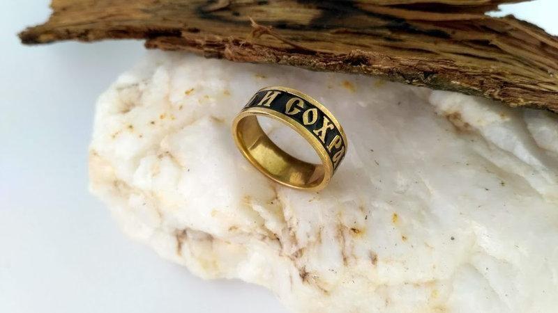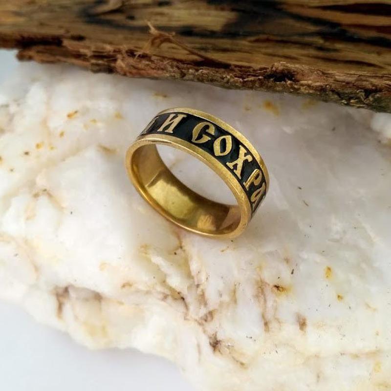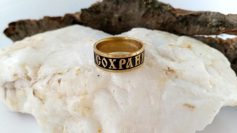 счёрной эмалью. Кольцо «Спаси и сохрани» считается сильным оберегом, религиозные люди относятся к нему с большим уважением. Считается, что кольцо-оберег