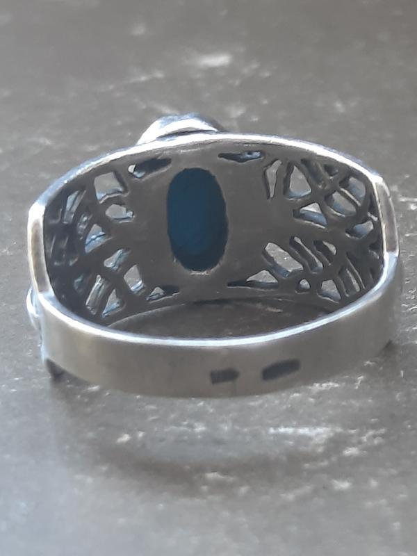 Винтажное антикварное серебряное кольцо кольцо кольцо с натуральной бирюзой 17,5