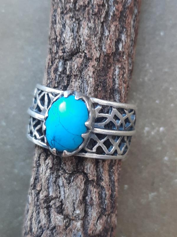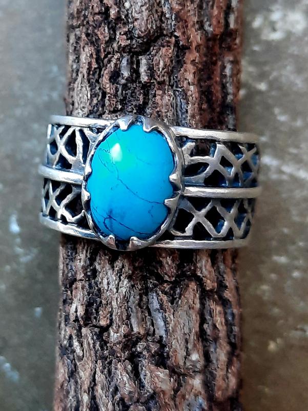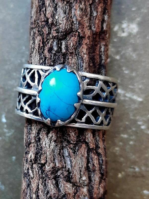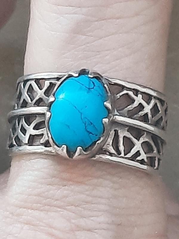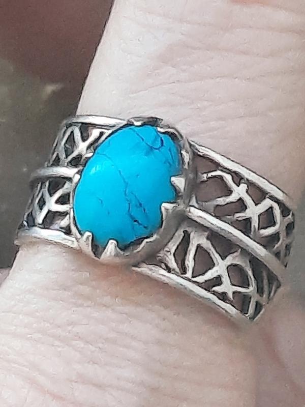 Винтажный антикварный серебряное кольцо кольцо с натуральной бирюзой