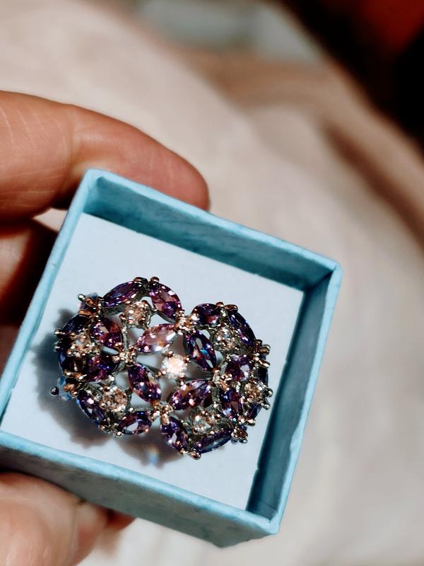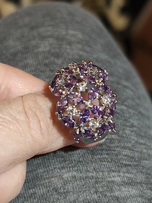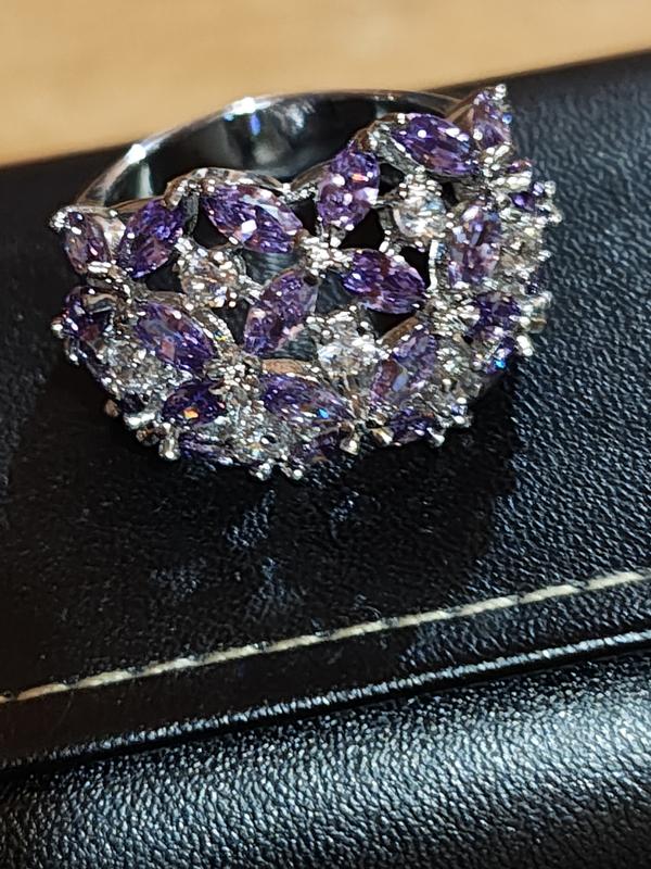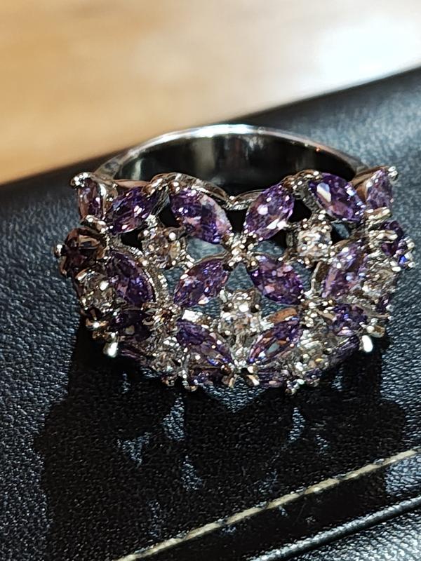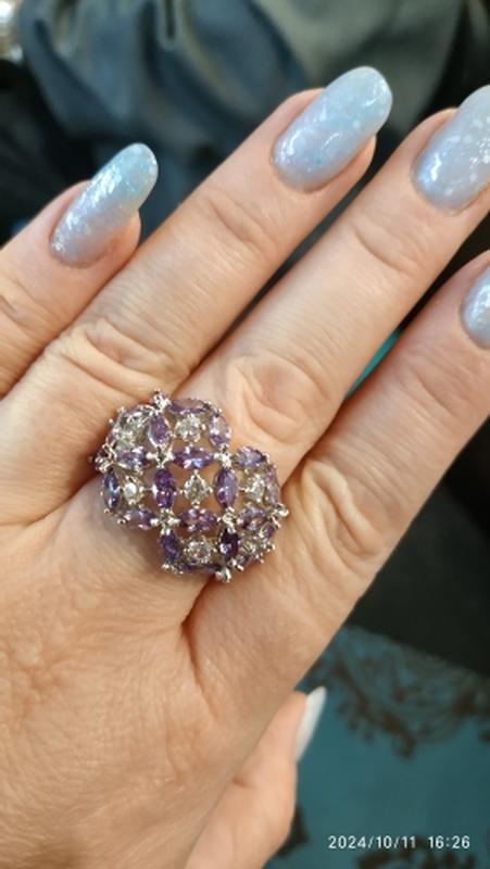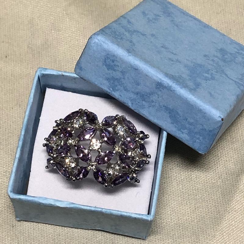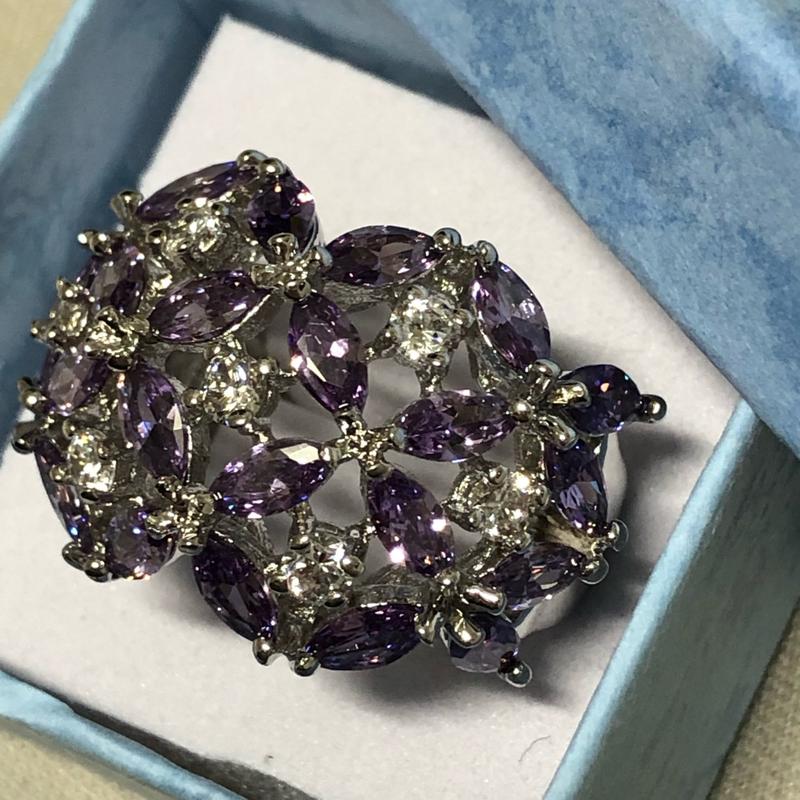 Красивое, крупное кольцо, ажурно выполненное с аметистами,размер только 20. Возможно подобрать браслет,чи серьги