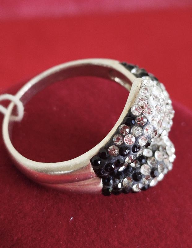 Срібниц перстень з кристалами swarovski чорного та білого кольору.