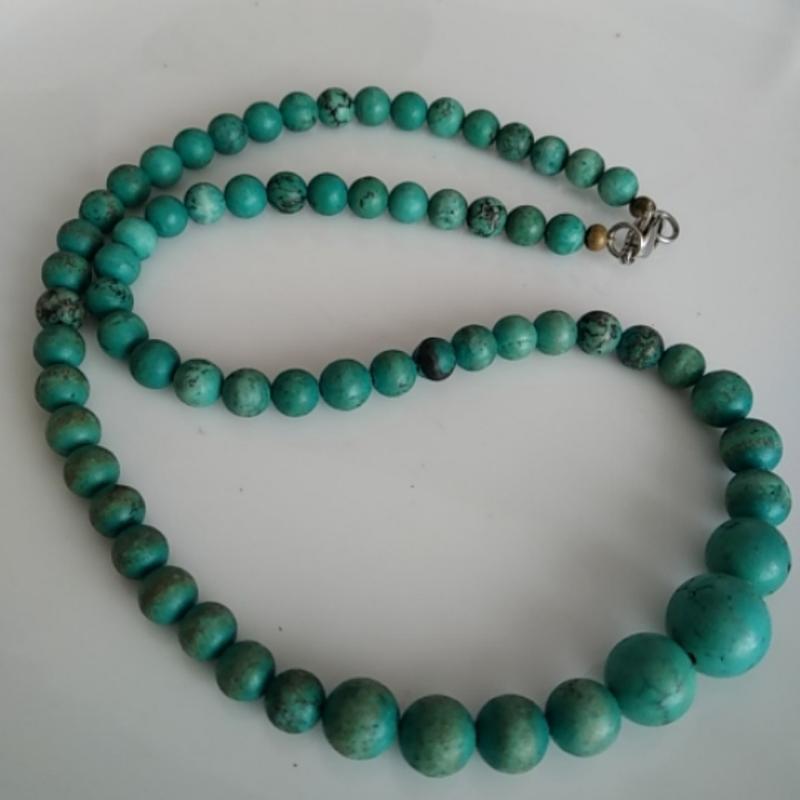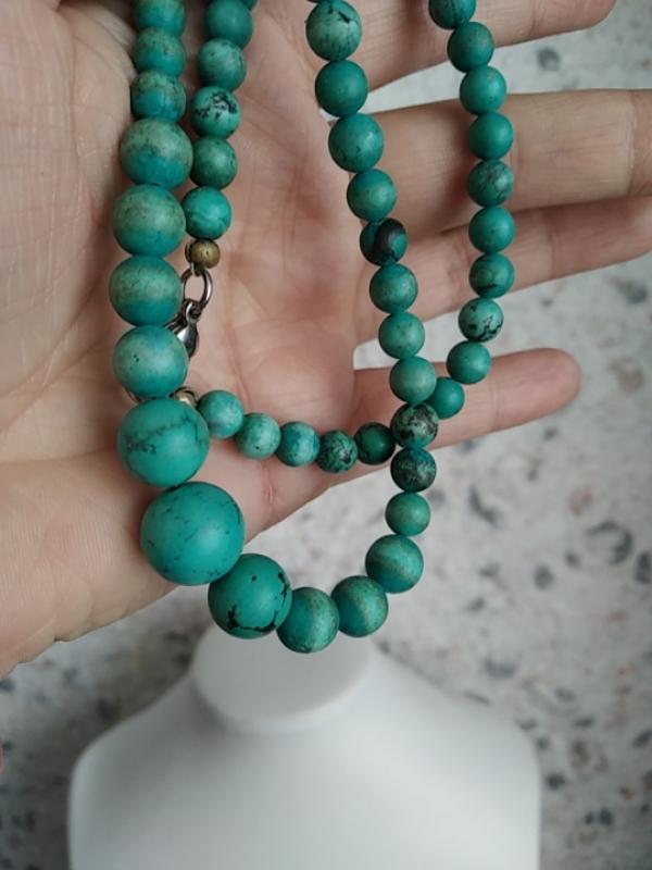 Колье бусы ожерелье зеленая бирюза натуральный камень винтаж