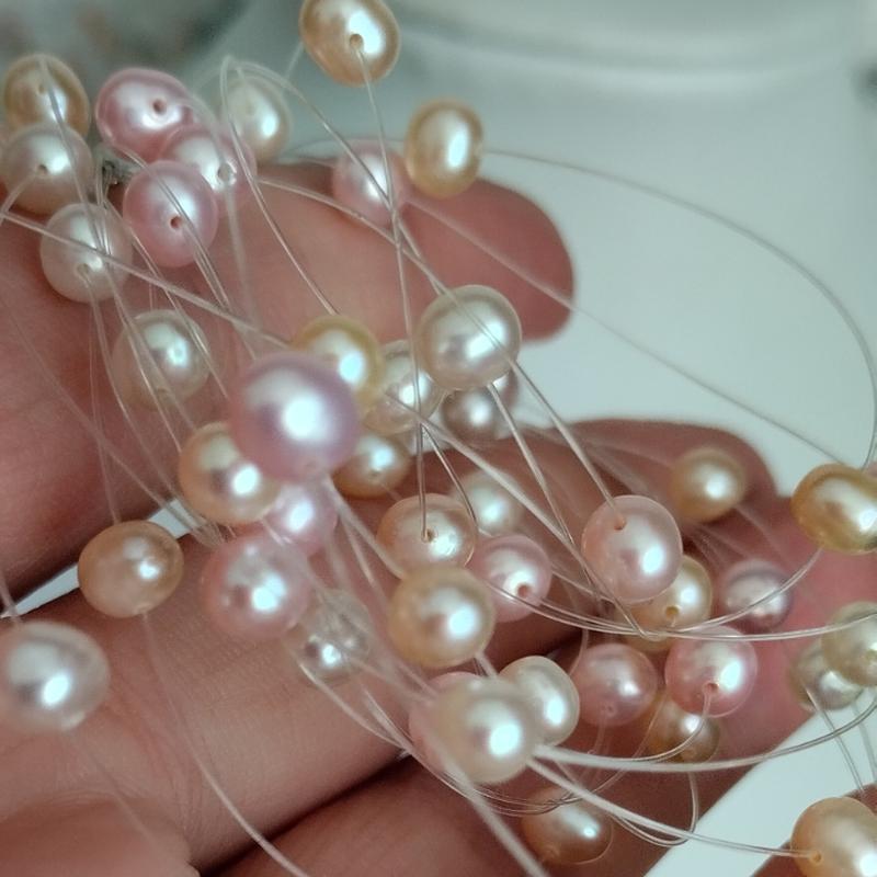 Нежное жемчужное ожерелье колье многослойное на жилке серебряная фурнитура
