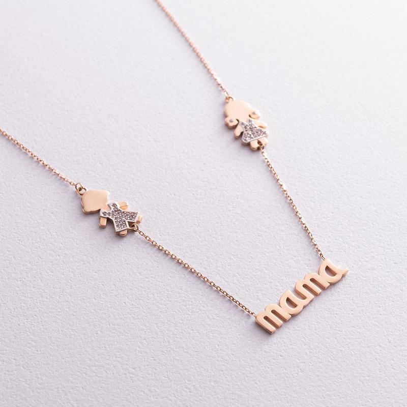 Золотое колье "Мама и девочки" (фианиты) Металл: красное золото 585" Вставка: