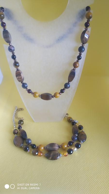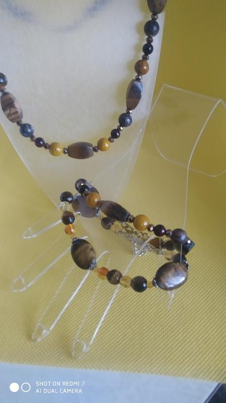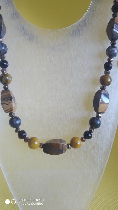 бусины тигровый глаз-15х8мм, бусины яшма 10 мм, бусины азурит 10мм, бусины (имитация) гранат-6мм., хрусталики
