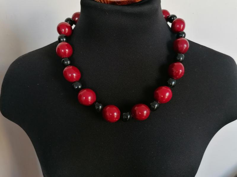 Ожерелье колье украинский стиль деревянное красное с черным