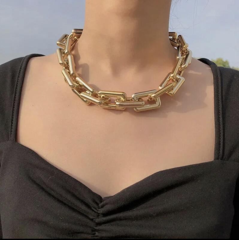 Ожерелье колье чокер крупная цепочка звеньевая золотистая