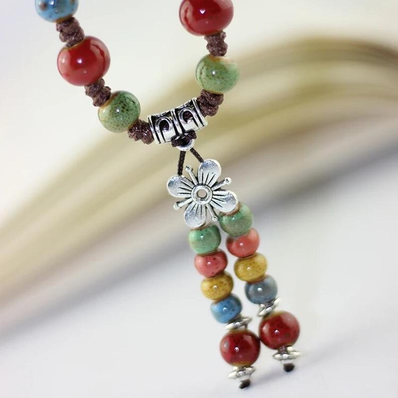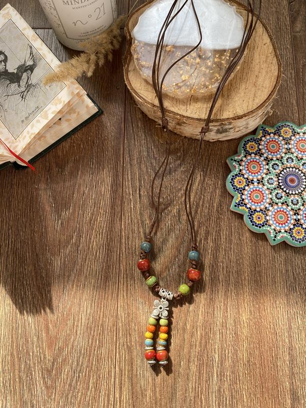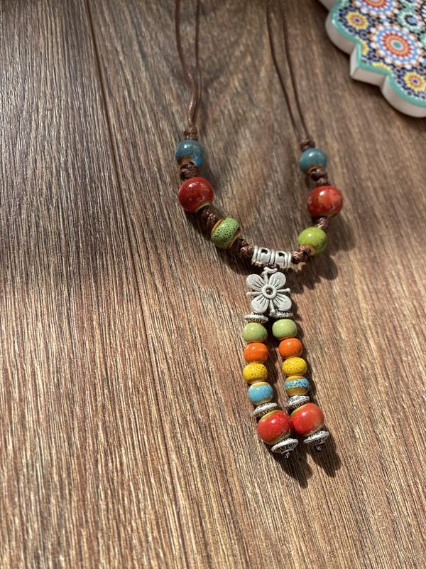 Намистины керамические. Шнурок из кожзама. Можно регулировать по длине. Металл серебристого цвета.