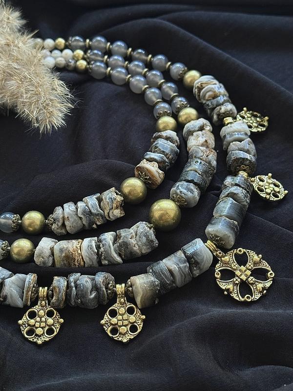 Світлове трирядне намисто з агату неймовірної огранки😍Доповнене авторськими латунними підвісами ручної роботи українських майстрів (литво)