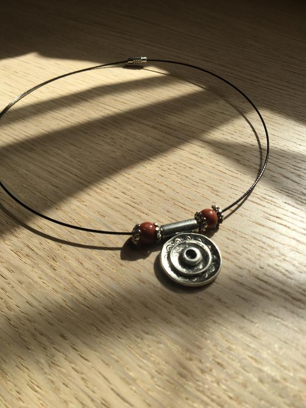 Колье в этно стиле , на жестком металическом шнурочке , бусини : искуственный авантюрин очень красиво блестят! Легкое и стильное!Новое.