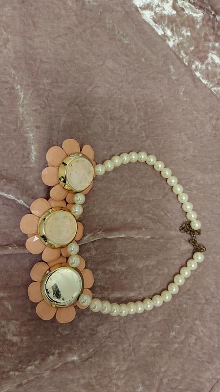 Милое украшение для создания романтического образа.Длина ожерелья 40см +8см скрепляющая цепьЦвет розочек нежно-розовый, жемчужинки белые, перламутровые.