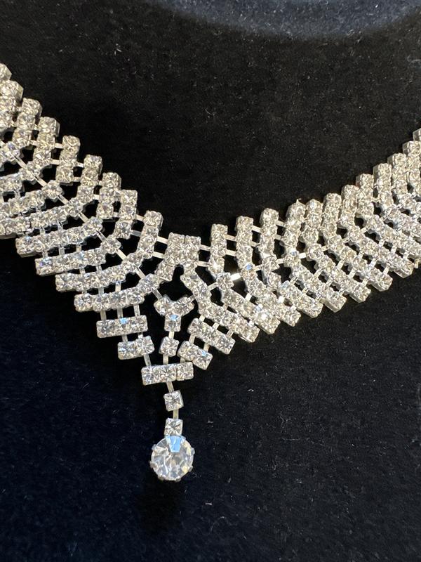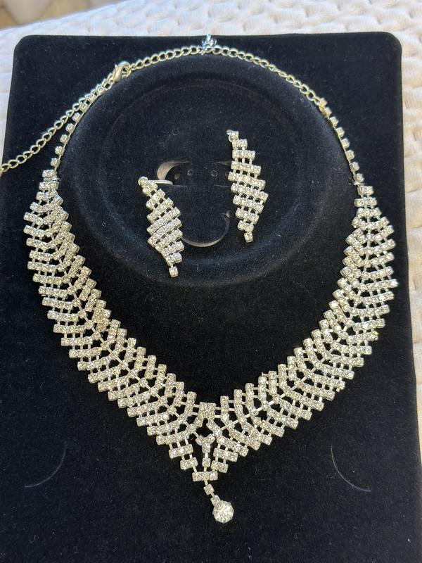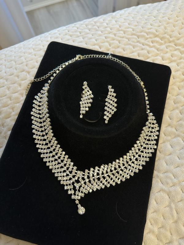 Красивый сверкающий комплект набор серьги и ожерелье стразы