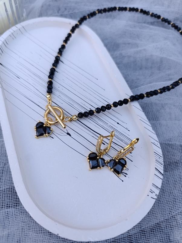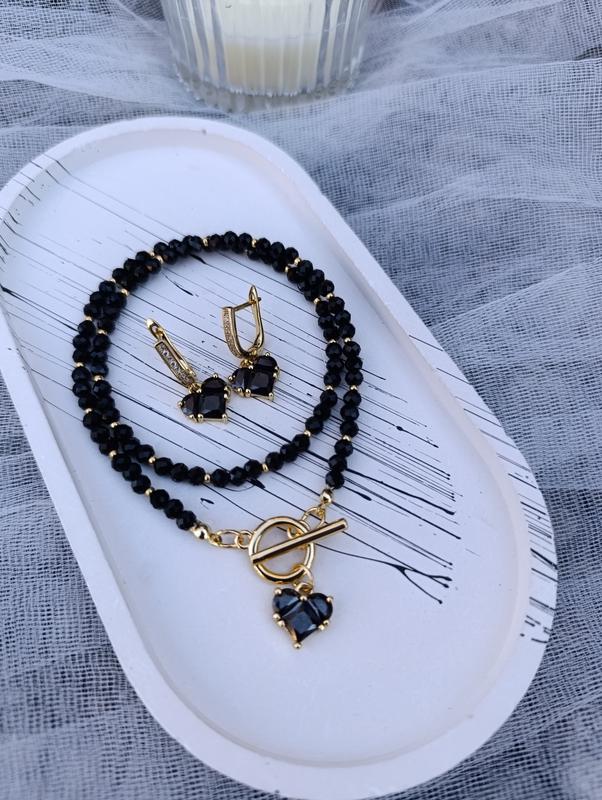 Длина 40 см, фурнитура гипоаллергенный сплав, латунь с покрытием позолоты 18к.Серьги из вставка фианитов, можно заказать без.