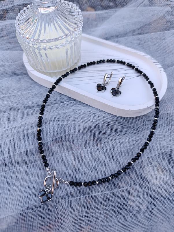 Длина 40 см, фурнитура гипоаллергенный сплав, покрытие родий.Серьги из вставка фианитов, можно заказать без.