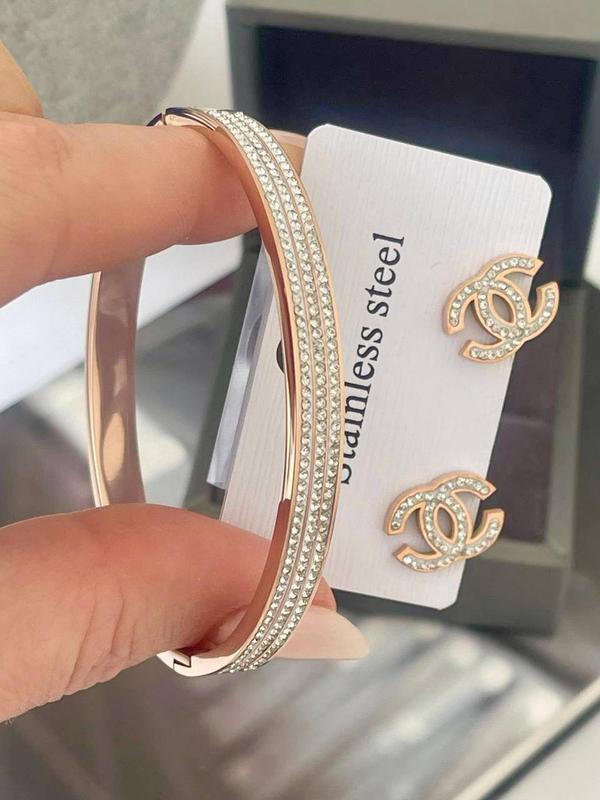 Набор медсталь, гвоздики серьги шаннель и браслет разъемный в камушках