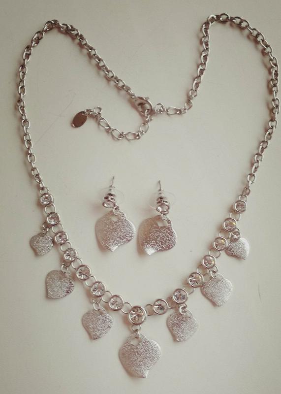Набор серебристый бабочки, серьги и ожерелья с белыми кристаллами