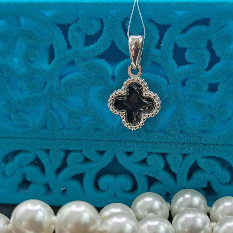 Серебряный классический кулон подвеска черный клевер ван клиф 925