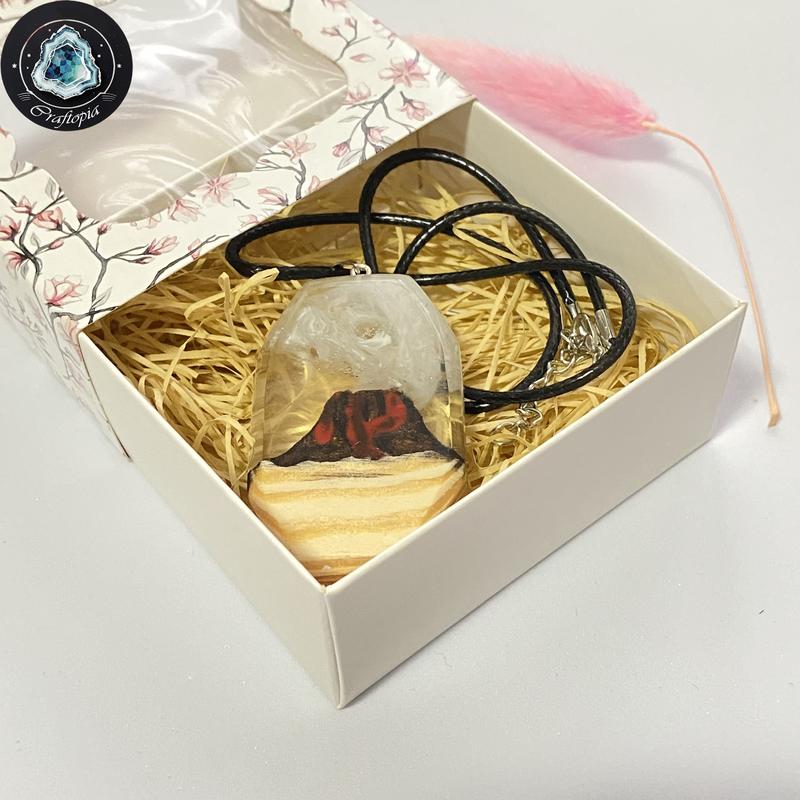 Прозрачная смола, внутри - вулкан с красной скамейкой, который вот-вот взорвется эмоциями. Кулон для тех, кто не скрывает свою страсть.