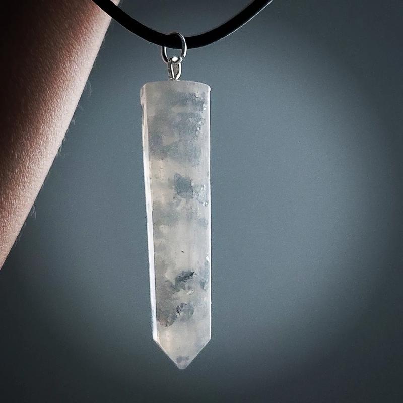 Кулон кристал из эпоксидной смолы с серебряной паталью, перламутровый. Переливаеться на солнце 🌞
