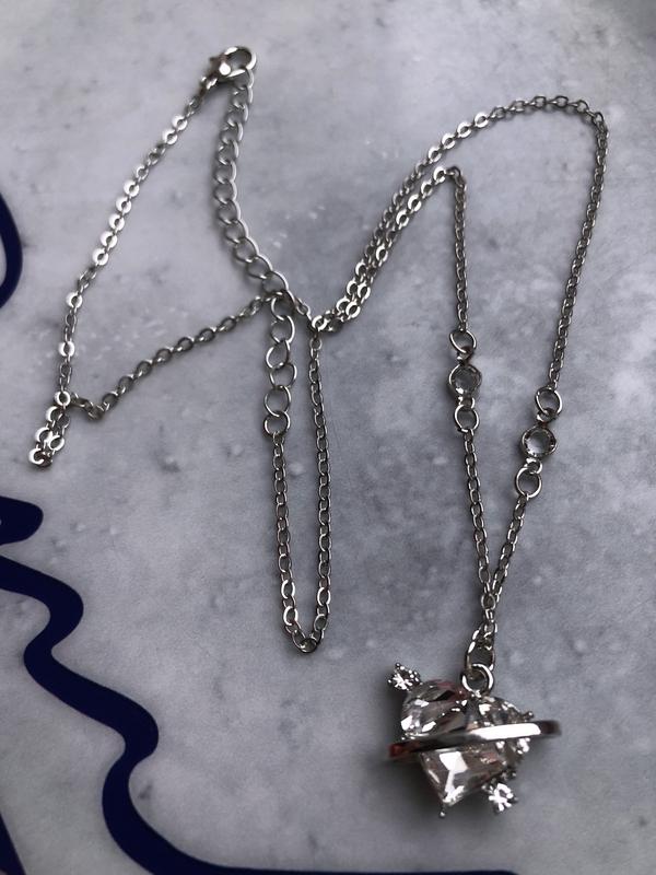 Цепочка цепка с подвеской сердцем сердечком камнем серебристая под серебро