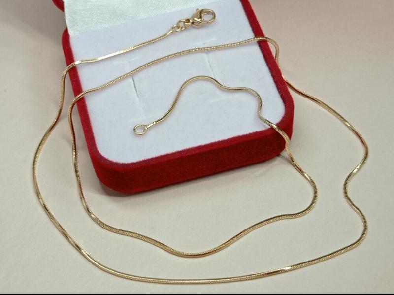 Очень красивая позолоченная цепочка, плетение Снейк🥰😍 Длина 50 см, ширина 1 мм. Позолота 585 пробы, высокого качества ААА! Гипоаллергенный сплав! По цвету и блеску совершенно не отличить от золота, не тускнеет и не облезает! Очень долго сохраняет цвет и блеск! Отправка по подписке на карту Монобанк, доставка за счет покупателя. Приятных покупок💐