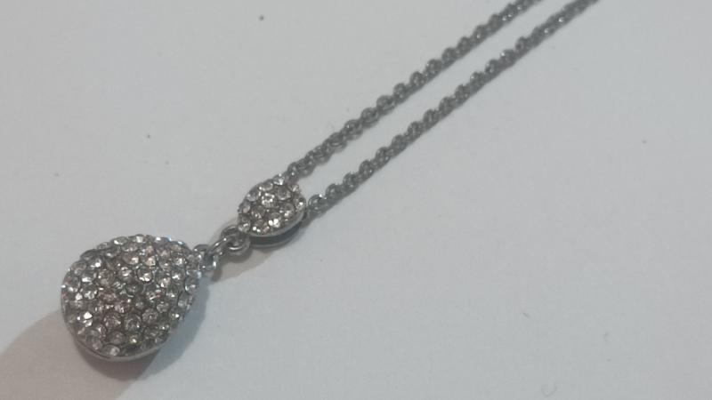Цепочка цепка с подвеской сердцем сердечком камнем серебристая под серебро