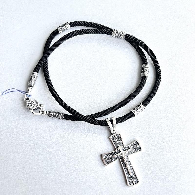Вес 18.5 гр. Длина шнура 55 (60) см. Длина креста 5 см.Мужской серебряный комплект: прямой литой православный крест с распятием ишнур с серебряной застёжкой-карабин с орнаментом и вставками серебра ссокращенной надписью "спаси и сохрани".Комплект для мужчины из шнура и кулона отличает красивая и качественная ручнаяработа: мягкий плотный шнурок прекрасно ложится на тело и имеет красивый вид.Это универсальное украшение для современного мужчины - идеальный подарок истильный аксессуар. Застежка красиво оформлена в православном стиле.Чернение (оксидирование) улучшает внешний вид украшения, защищает от мелкихповреждений, увеличивает срок службы и облегчает уход за изделием.Такой комплект украшений не боится влаги, перепадов температуры,износоустойчивый, шнур не тянется и не рвется.Серебряный крест изготовлен по церковным канонам, имеет современный дизайн иудобную форму, на обратной стороне молитва.Универсальное современное украшение по выгодной цене.Отличный подарок и оберег близкому человеку по любому поводу.Все изделия заводские, имеют пробу, пломбу и бирку производителя.Выгодная цена, быстрая доставка, безопасная оплата, подробные фото.Консультация, быстрый заказ:*************