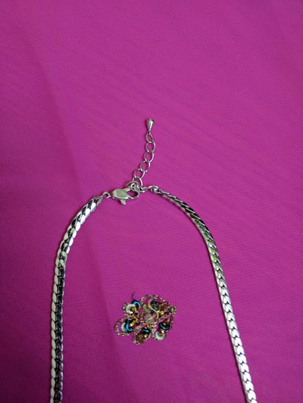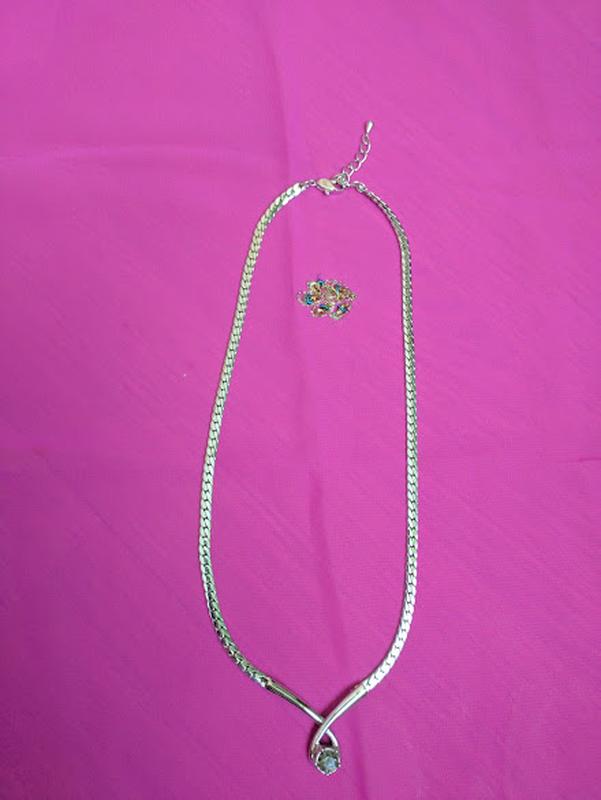 Подвеска на белой цепочке , по средине камушек . Длина в застегнутом виде 20 см