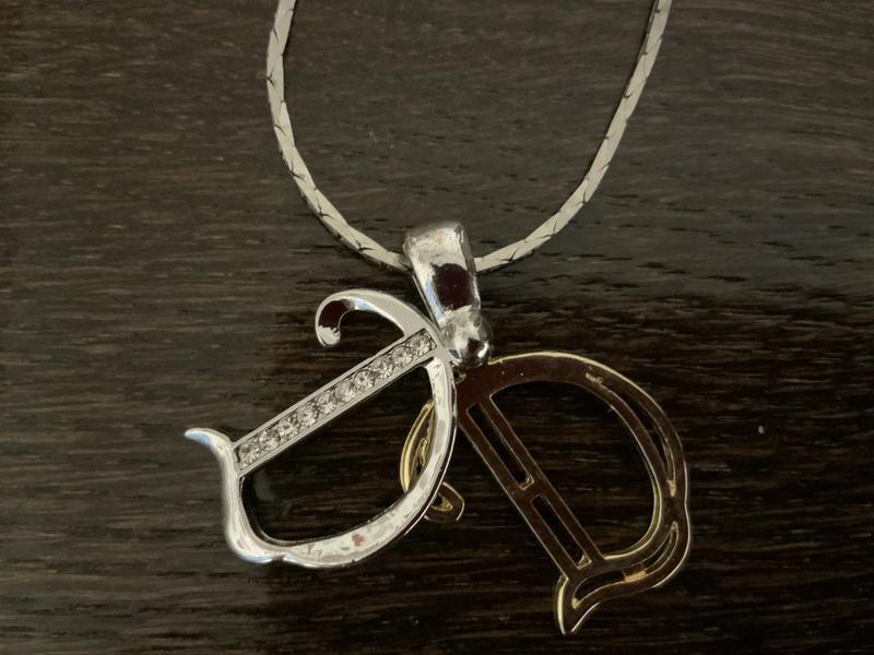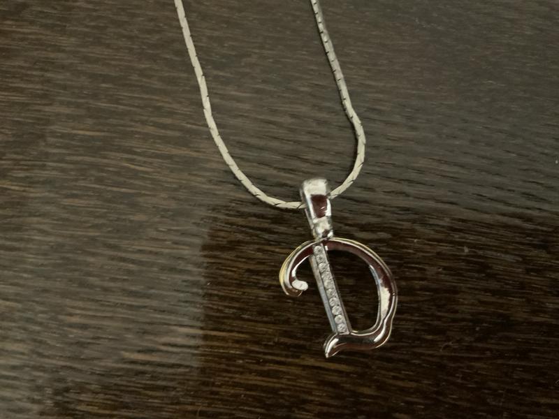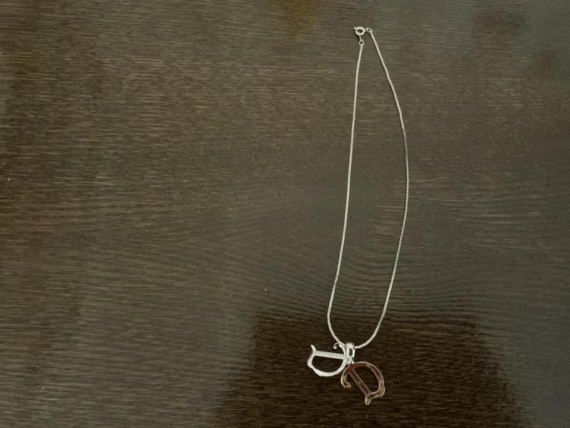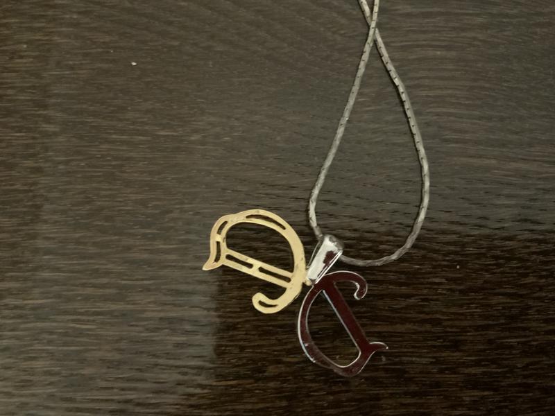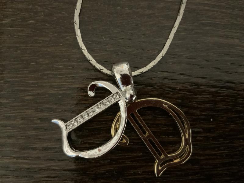Цепочка цвет -серебро.Двойная подвеска.Одна часть золотого цвета.Вторая цвет серебро-в центре кристаллы.Маркировки нет.Размеры:40см