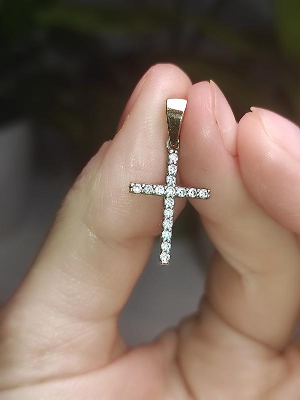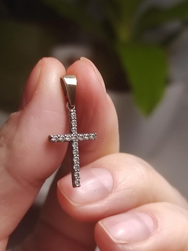 подвеска в виде крестика, серебряная с позолотой, со вставками, возможно циркон, состояние нового