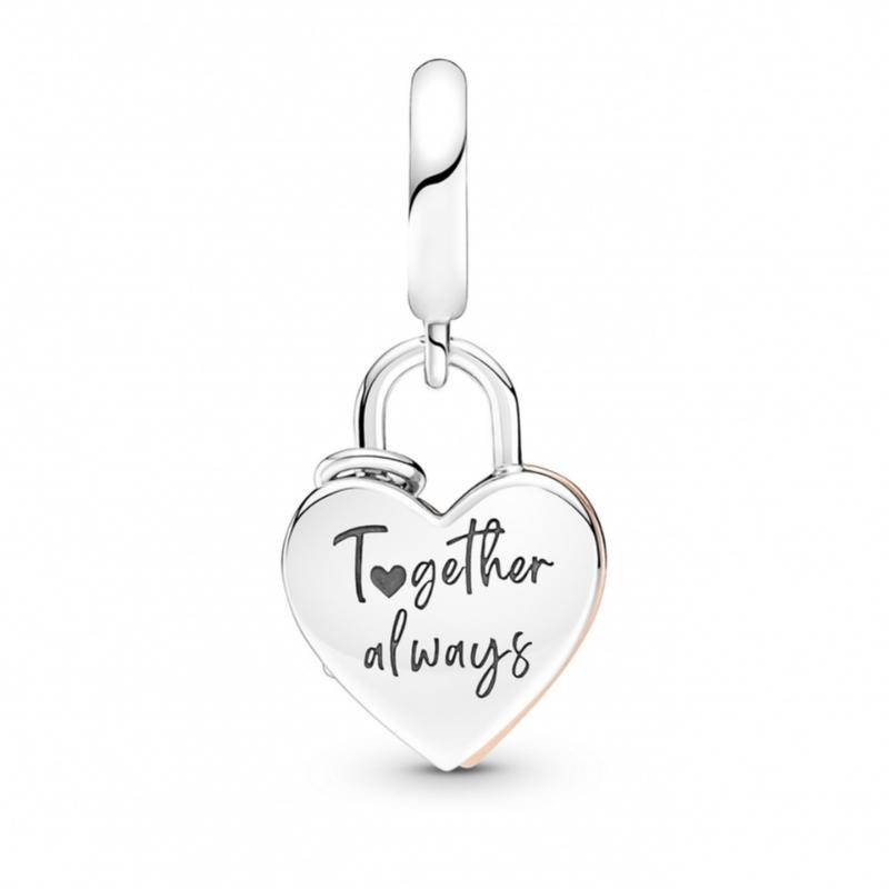 оригинал ✅️бусины с двумя подвесками "вместе навсегда "покрытие 14к розовое золото ❤️сердце из серебра 925-й пробы окрашенное куб.оксидами циркония бриллиантовой огранки ✅️и дополненное гравировкой "вместе навсегда "замочек 925 пробы✅️