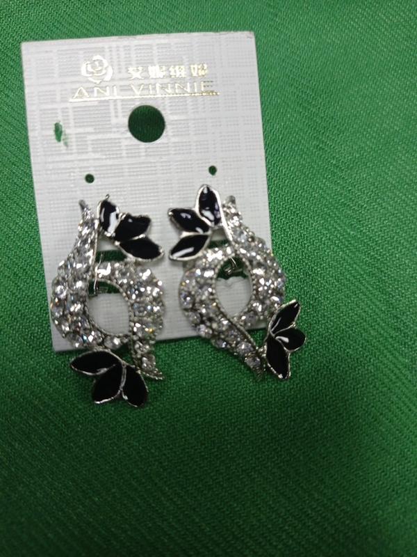 подвеска..форма интересна..в камушках.вставки из черной эмали..цепочка..серьги в комплекте.