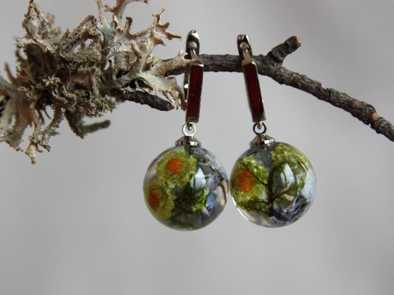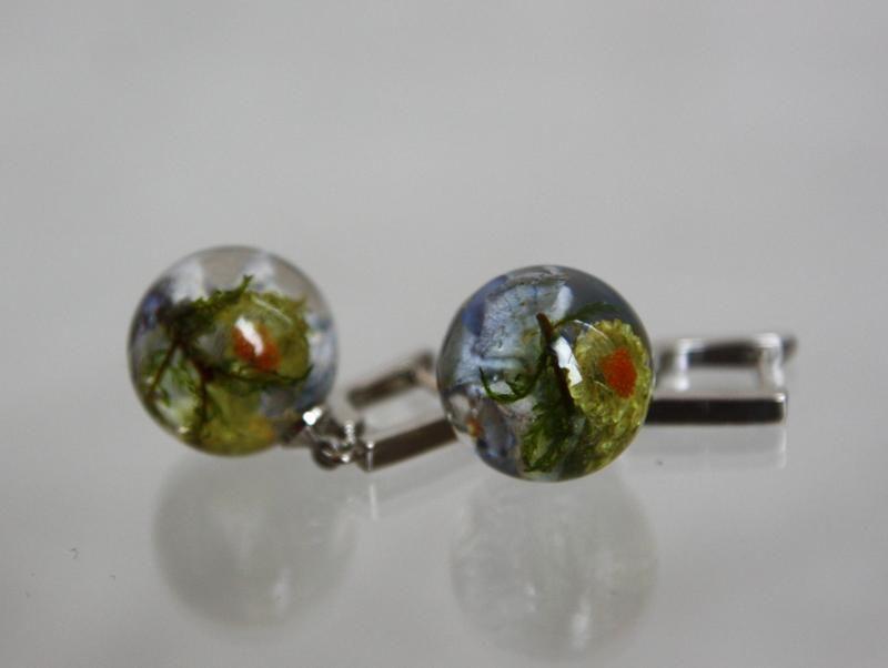 Настоящий бессмертник, мох и голубые лепестки в эпоксидной смоле.