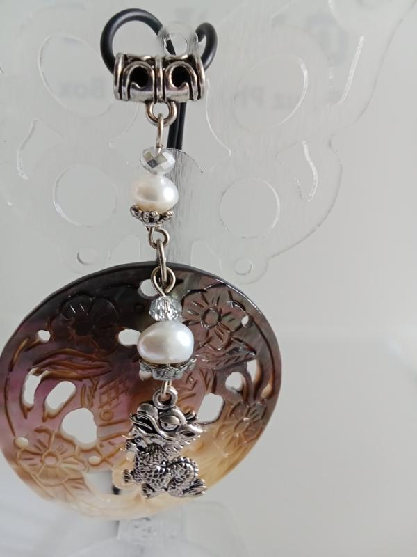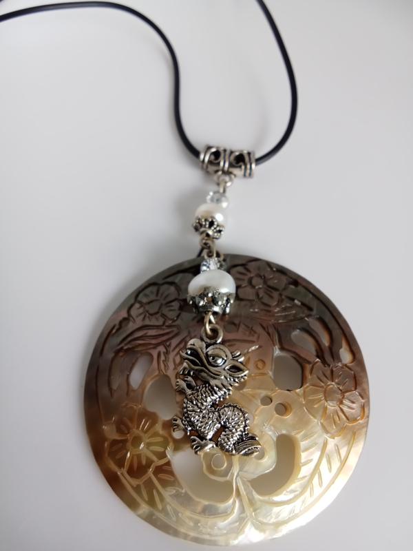 Вставка: Очень красивая резная пластина натурального перламутра диаметром 4см, натуральная жемчуг 7мм.