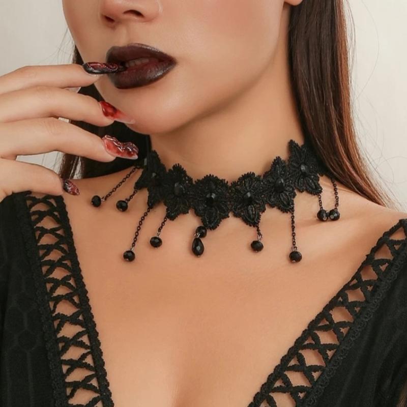 В наличии Чокер черного цвета, женское украшение на шею. Длина 30 см + 7 см цепочка. Изготовлен из кружева, акрила и медной цепочки.