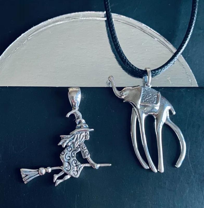 Дизайнерские серебряные подвесы «слон дальше» и «фея на метле»