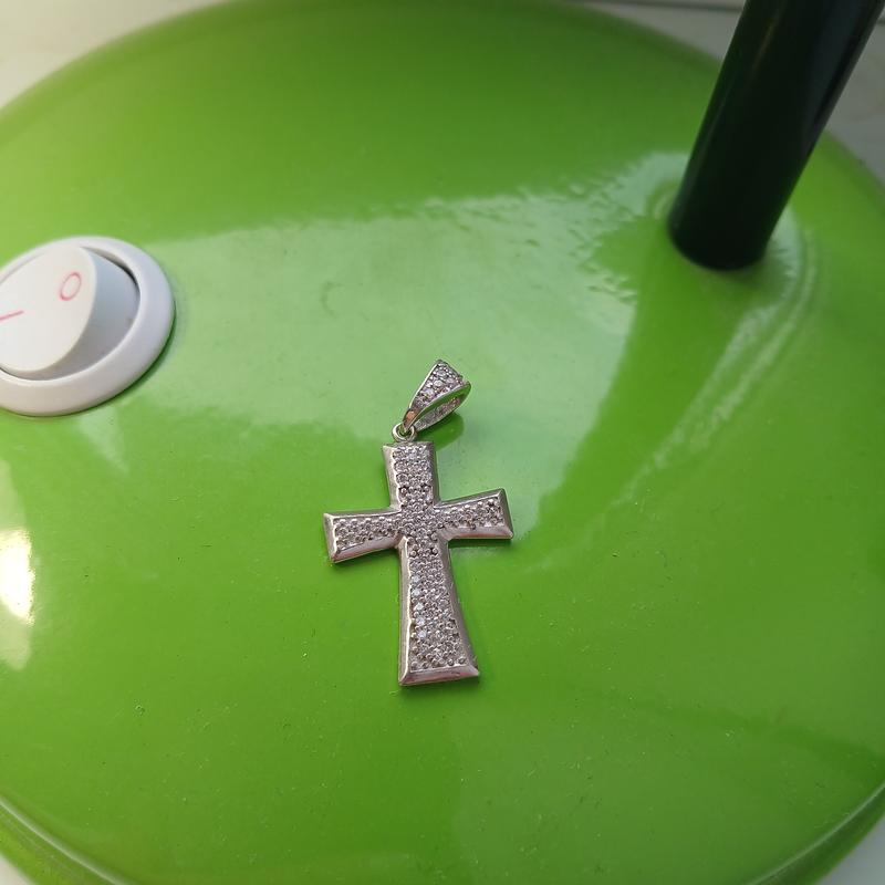 Серебряный массивный большой кулон подвеска крест с фианитом 925 унисекс скидка покупателю
